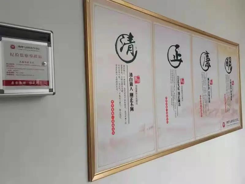 Beat365唯一官方网站纪委自成立近一年以来,主动作为,积极探索建立具有学院特色的监督体系,扎实推进基层学院全面从严治党向纵深发展,营造学院风清气正的政治氛围。从建立学院纪委工作制度到组建学院纪委三支监督信息员队伍,从畅通监督渠道到营造廉政氛围,加大宣传力度,采用线上线下、实践活动、主题宣讲等多种形式,多措并举打好建设好廉政文化的组合拳。除了廉政文化墙建设外,在明理楼内外张贴新时代高校教师职业行为十项准则、清正廉明廉政文化展板、设立举报箱。在学院官方网站增设“纪检监察”版块,设立廉政提醒、廉政课堂、廉政文化、举报渠道栏目,在官方微信公众平台“物理青年”每周推送廉政-提醒专题,转载“廉韵津沽”的廉政小课堂内容,在求实教室推出“廉政主题影片赏析”系列活动,每月推出相关主题电影,邀请师生一起欣赏,在润物无声中推动师生廉政意识入脑入心,努力营造“人人思廉、人人倡廉、人人行廉”的廉洁文化氛围。