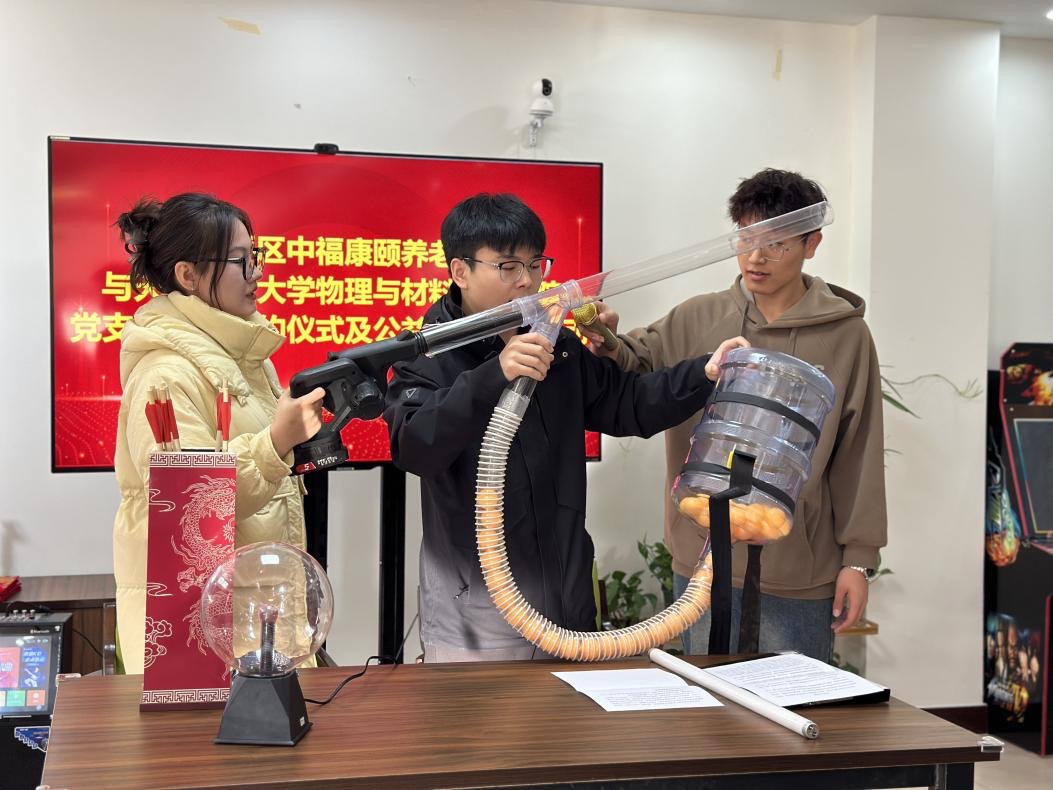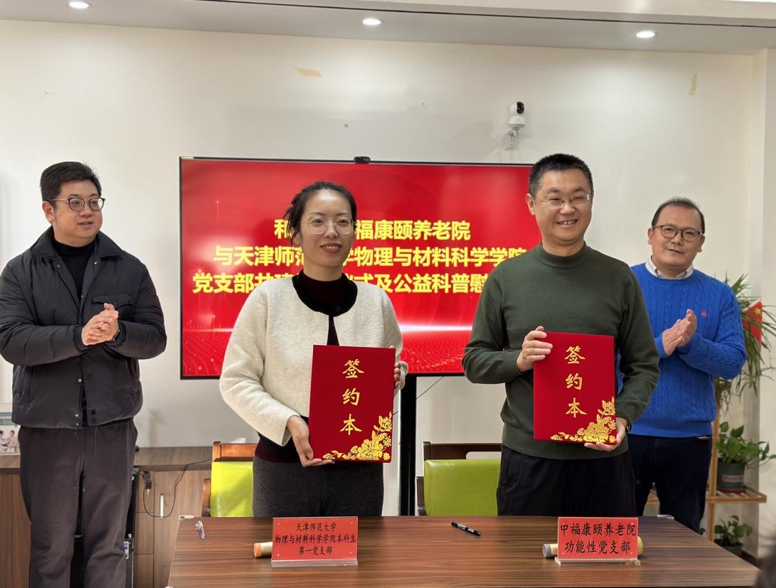 11月26日,Beat365唯一官方网站师生代表走进和平区中福康颐养老院开展“科普慰问、健康敬老”的公益科普慰问活动,同时学院物理学本科生第一党支部与养老院功能性党支部签署了共建协议。