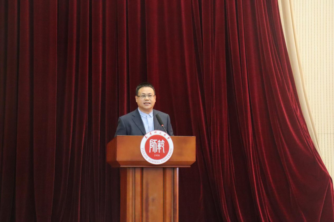 学院党委副书记、院长黄美东老师在致辞中详细介绍了学院的历史发展、专业情况和师资力量。他希望同学们一要牢记习近平总书记嘱托,接过前辈的接力棒,将个人理想追求融入到国家和民族事业中;二要传承师大精神,立足新时代,在了解国家需求和国际科学前沿中砥砺强国之志;三要保持专业兴趣,在培养创新能力中积蓄成长动能,努力成为堪当民族复兴大任的时代新人。