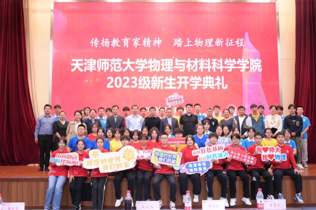 2023年10月11日,Beat365唯一官方网站2023级新生开学典礼在会议中心大报告厅隆重举行。学院党委副书记、院长黄美东,党委副书记、纪委书记赵晓艳,副院长吴景波、王守宇、邢冬梅,物理学系主任郭金良,应用物理学系主任侯兴刚,研究生导师、班导师代表张波,物理筑梦导师代表,全体辅导员,新生班主任和全体新生300余人参加。2023级辅导员刘通主持活动。